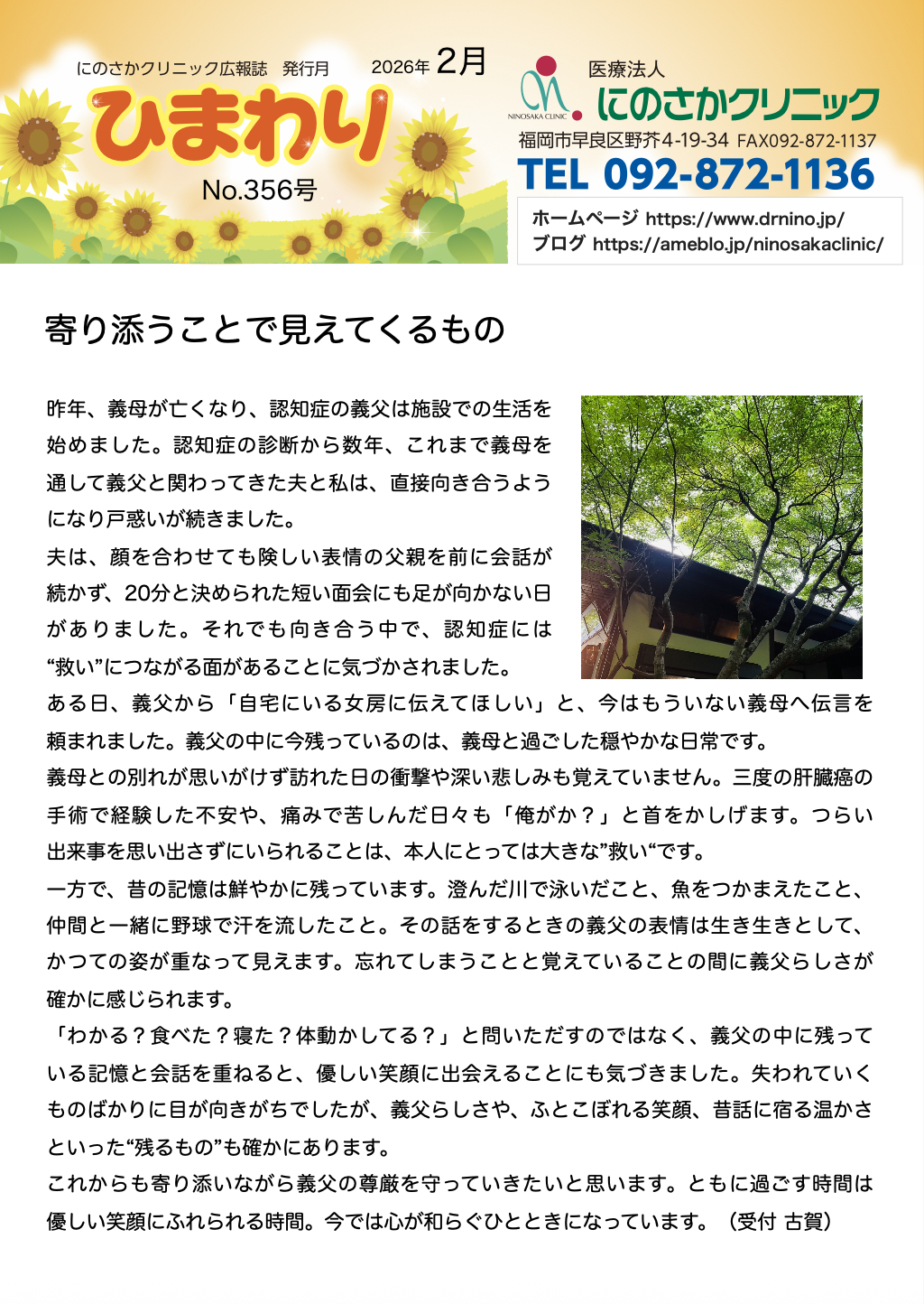 毎月発行しているにのさかクリニックの広報誌「ひまわり」です。患者さんや地域の皆さんに配布しています。サイトではPDF版にしています。是非御覧ください。